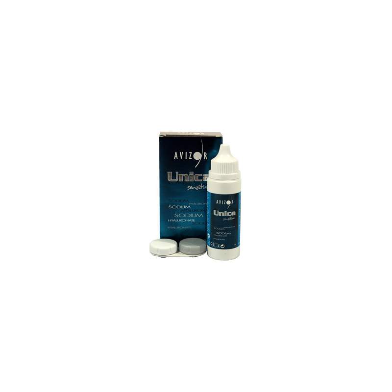 Avizor Unica® Sensitive został opracowany dla użytkowników soczewek o bardzo wrażliwych oczach. W jego składzie zawiera się m.in: środek nawilżający Hialuronian Sodu (naturalny składnik gałki ocznej) oraz minimalna ilość substancji konserwujących, których niewielka ilość zapobiega uczuleniu oka.